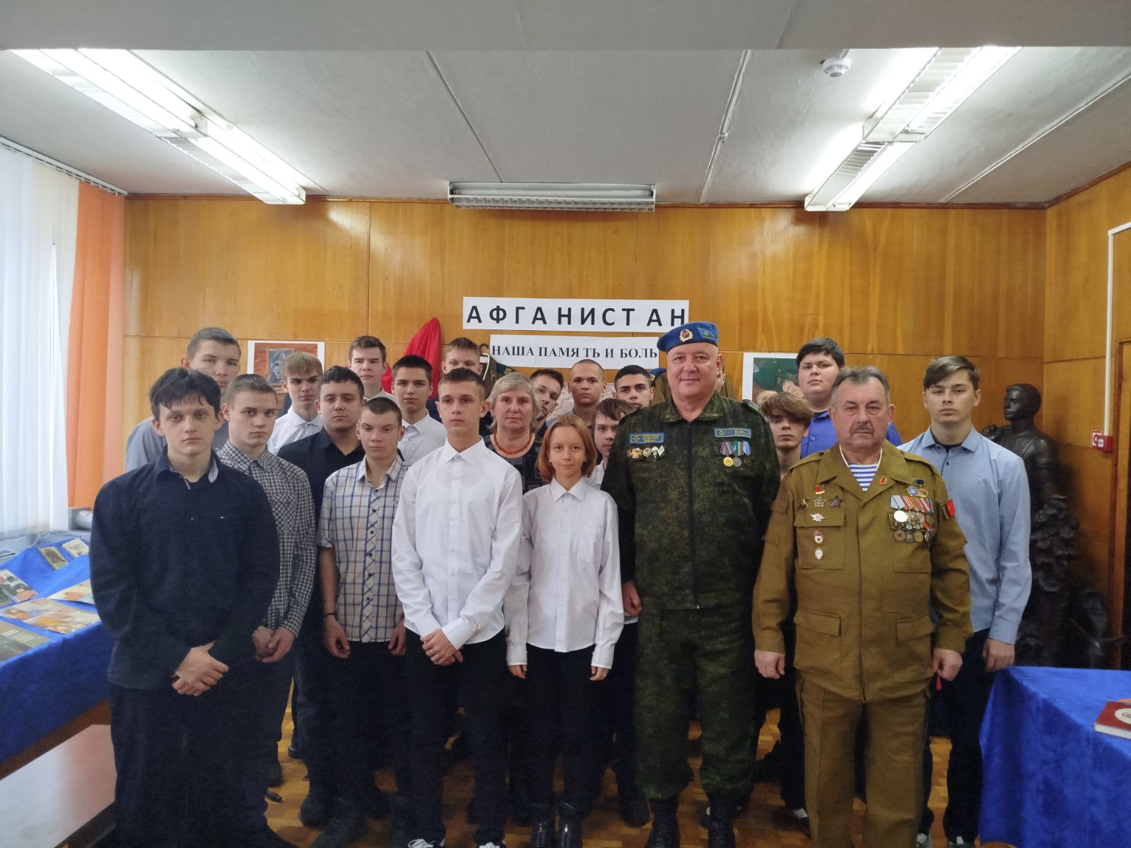 В третьей — расположена книжная выставка, выдержки из газет, личные вещи, фотографии служивших в Афганистане, фотоальбомы.