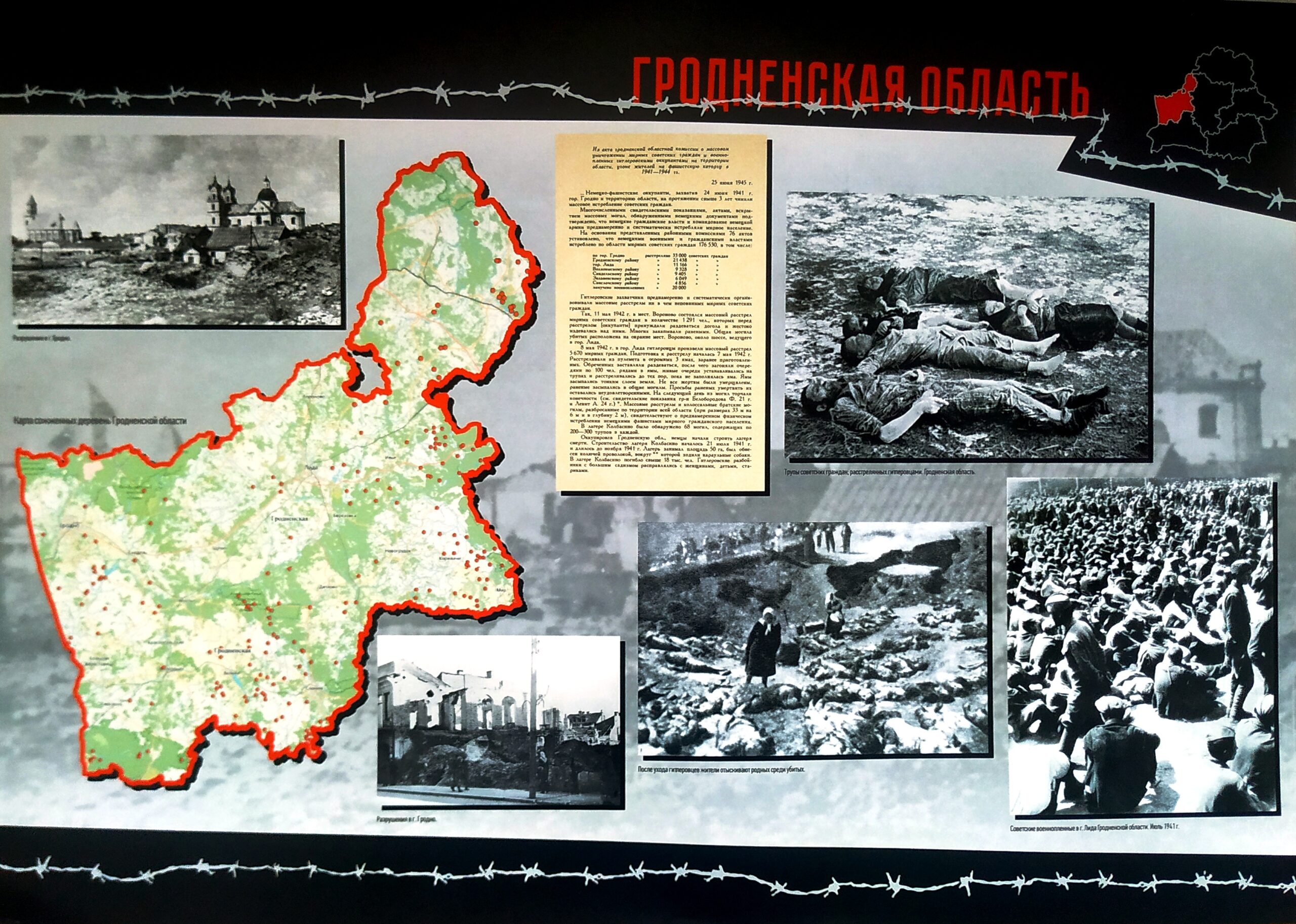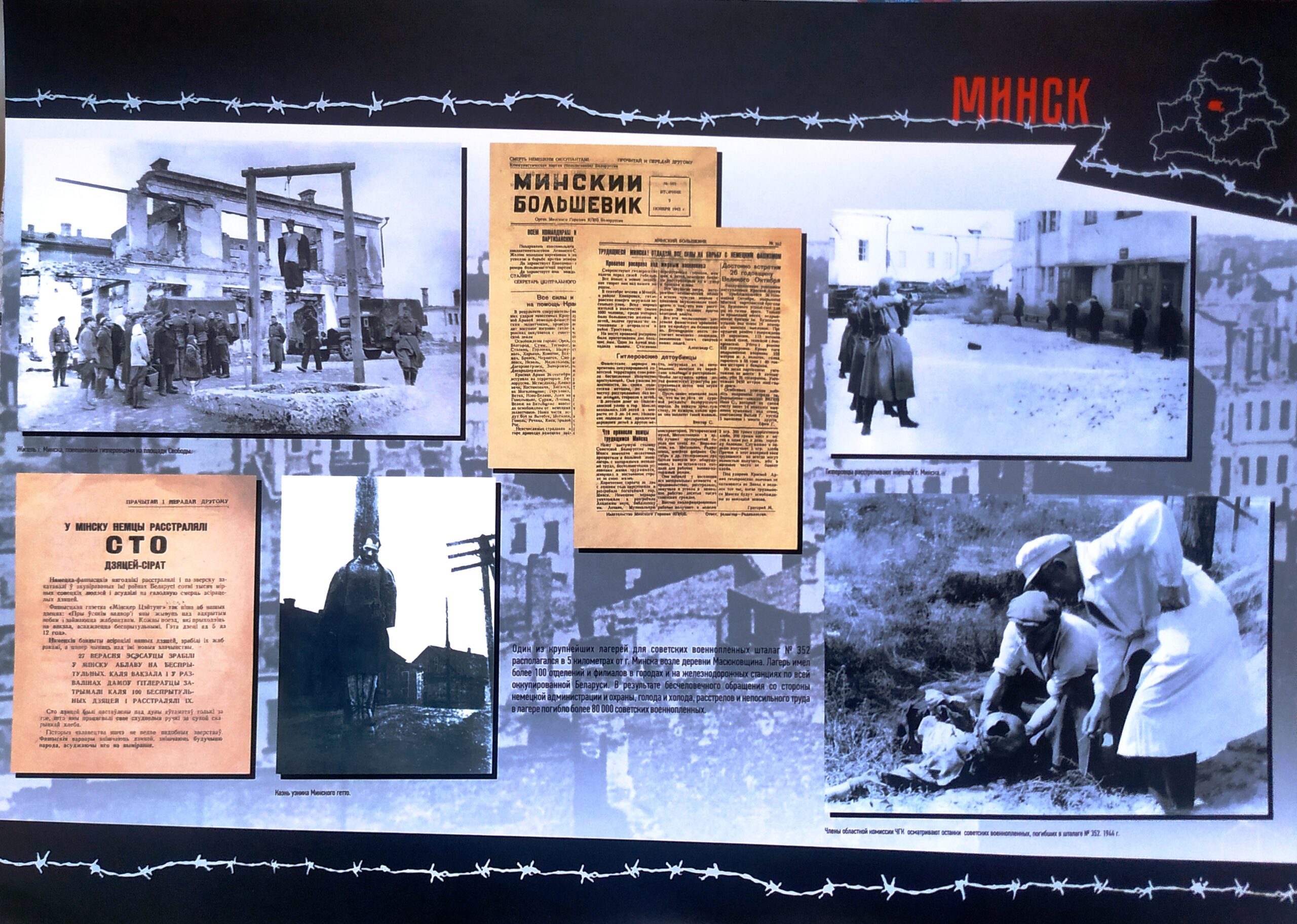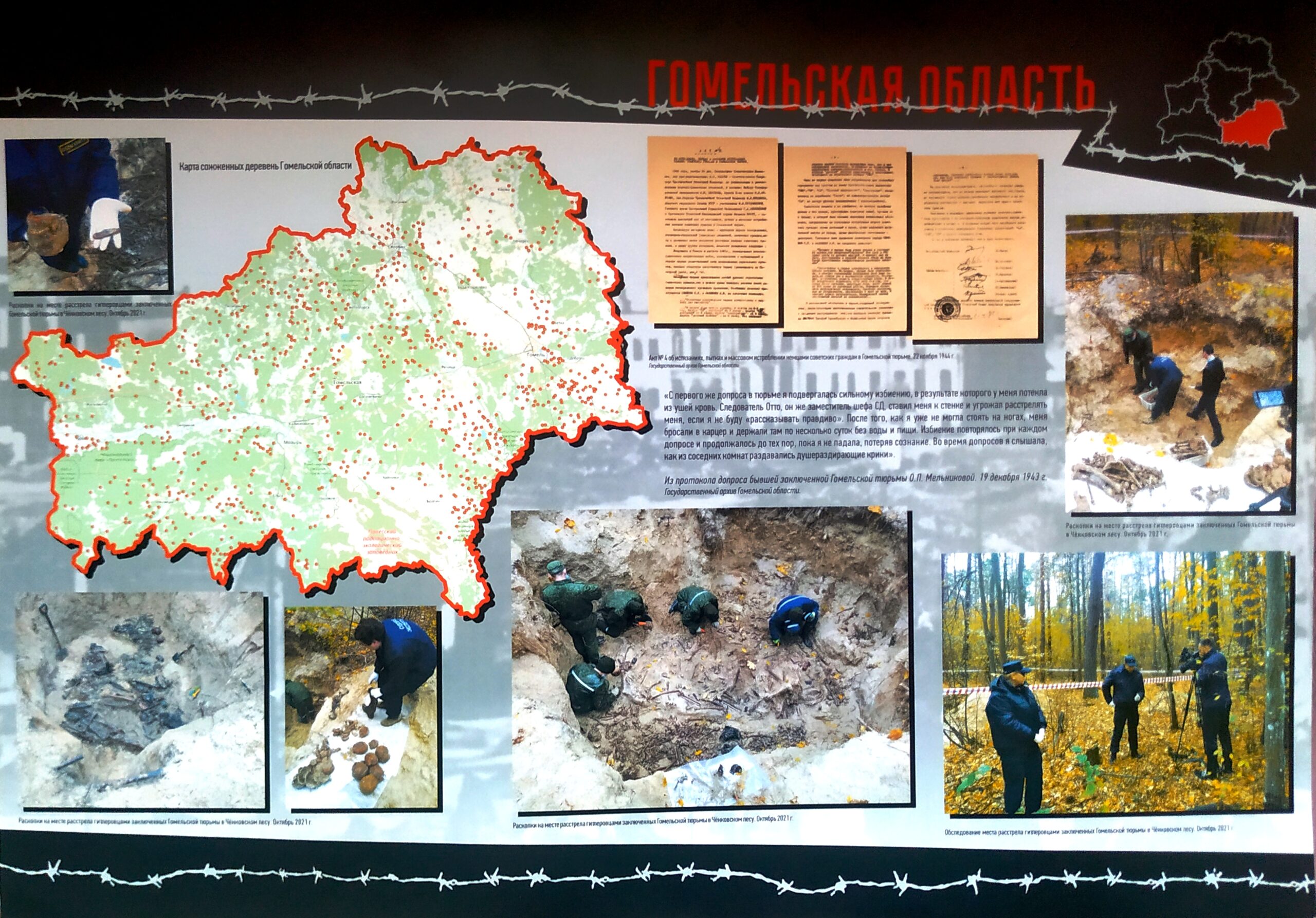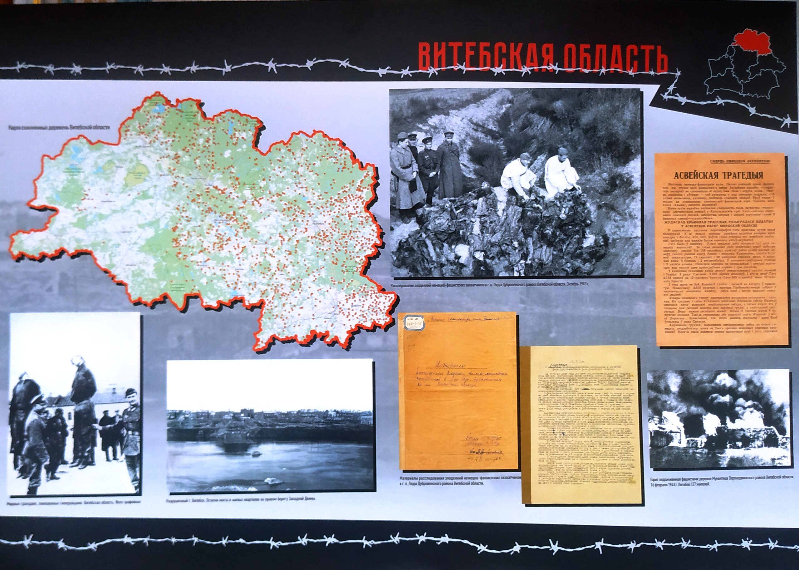 При подготовке экспозиции были использованы материалы из книги «Геноцид белорусского народа», показания отчевидцев, а также архивные документы.